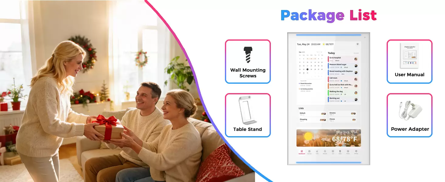 15.6 inch Smart Digital Calendar & Chore Chart, LED Reminder Light, Wall & DeskMount - Smart Family Planner for Daily Schedules