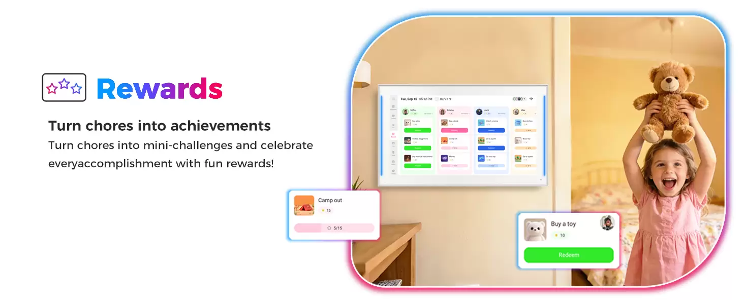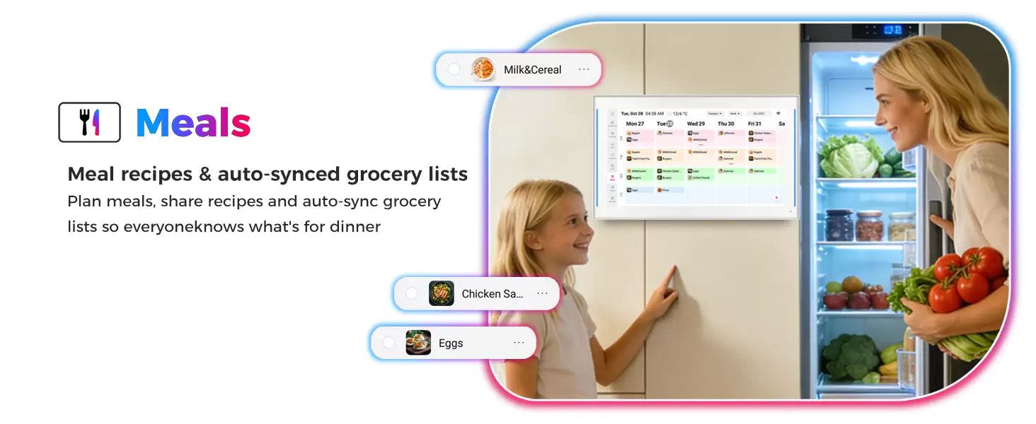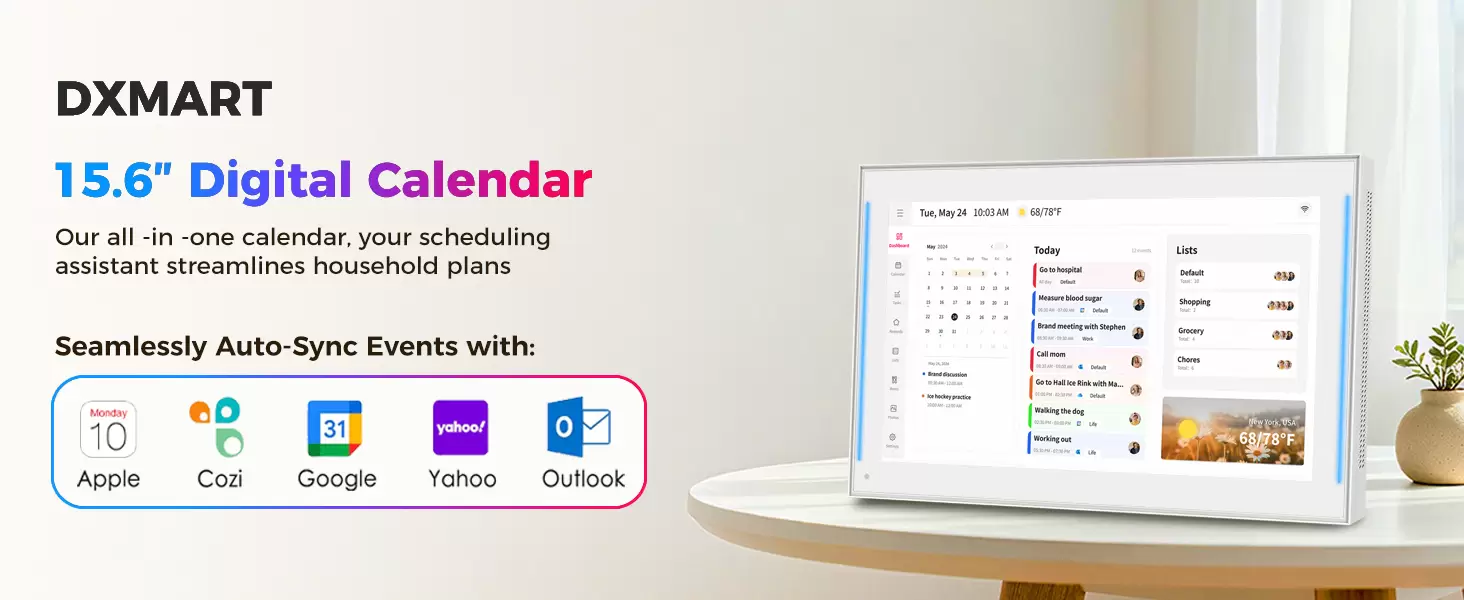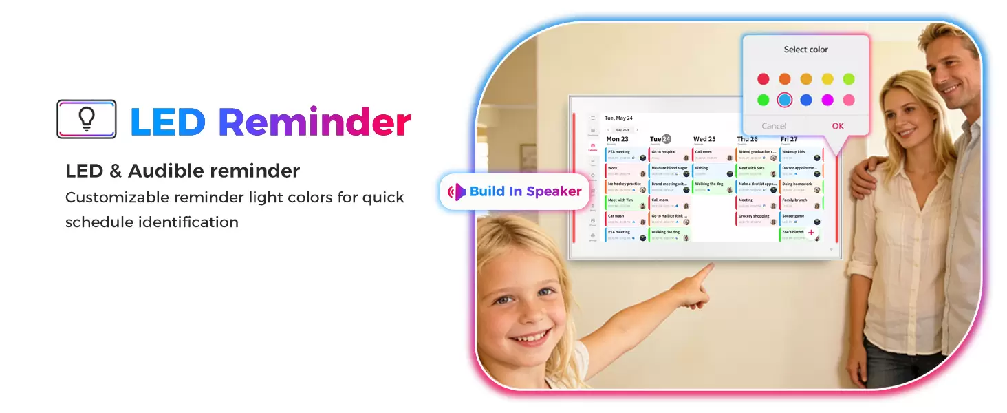 15.6 inch Smart Digital Calendar & Chore Chart, LED Reminder Light, Wall & DeskMount - Smart Family Planner for Daily Schedules