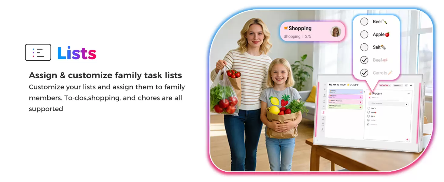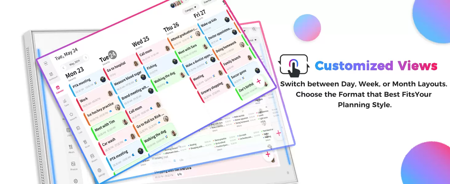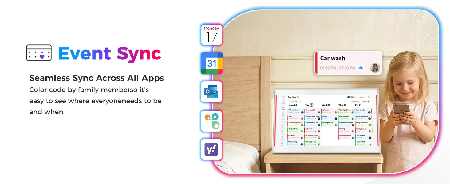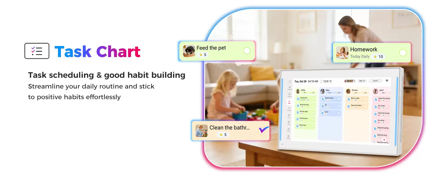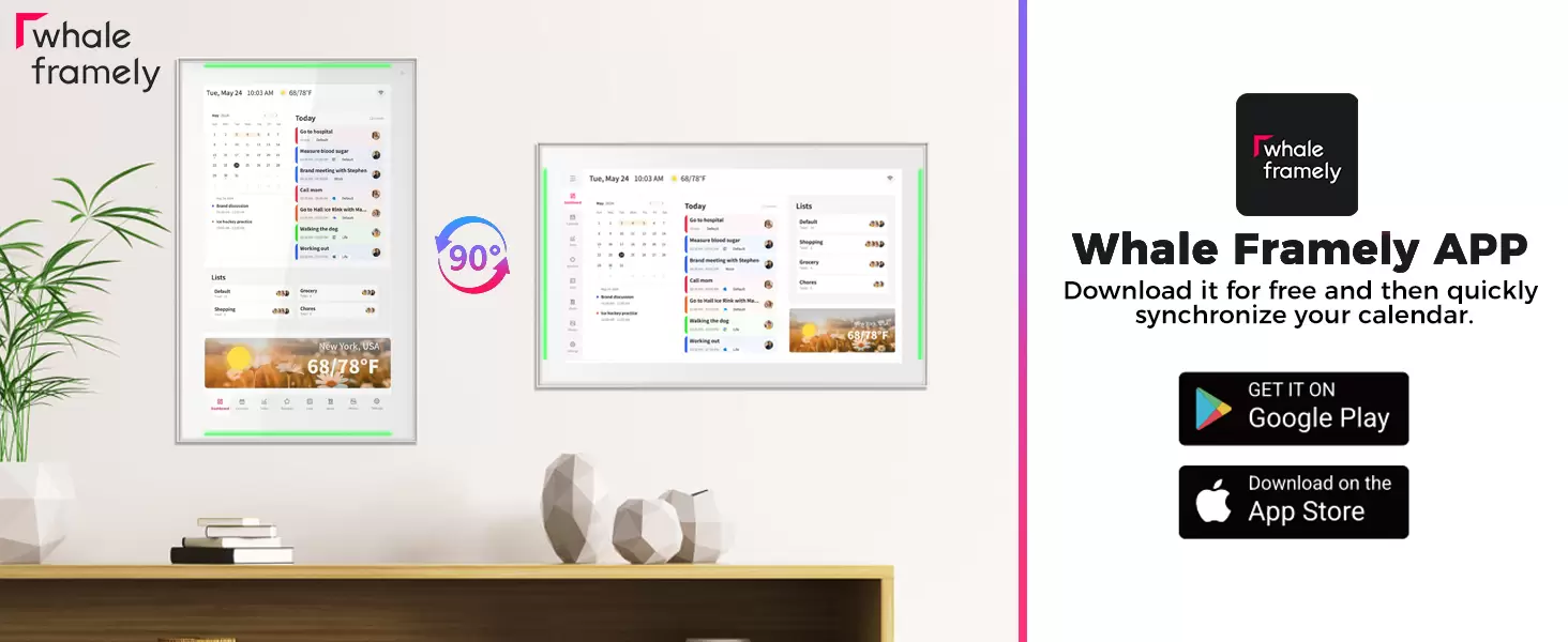 15.6 inch Smart Digital Calendar & Chore Chart, LED Reminder Light, Wall & DeskMount - Smart Family Planner for Daily Schedules
