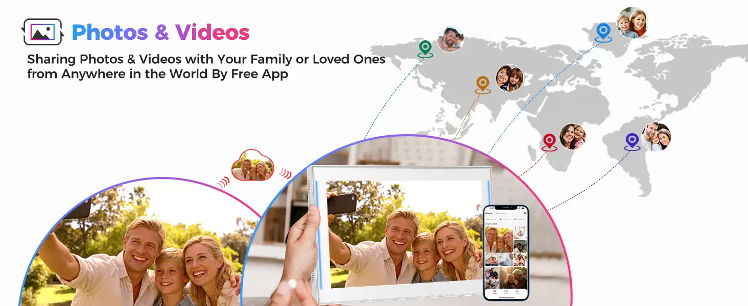 We get a lot of positive feedback from users who set up a frame at their home, load it with photos, and then gift it to someone without a Wi-Fi connection. Then, whenever they visit the household without Wi-Fi, they can connect the frame to a smartphone hotspot and simply transfer photos while the frame has an internet connection.