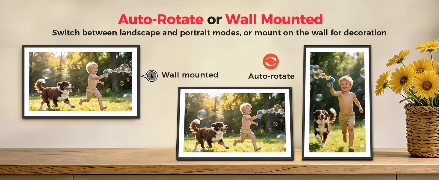 Digital photo frames can be used long-term while plugged in, with their design accounting for heat dissipation. However, avoid long-term operation in high-temperature environments (e.g., direct sunlight, near heating appliances) to extend the lifespan of the screen and internal components. Turn off the power if not used for a long time.