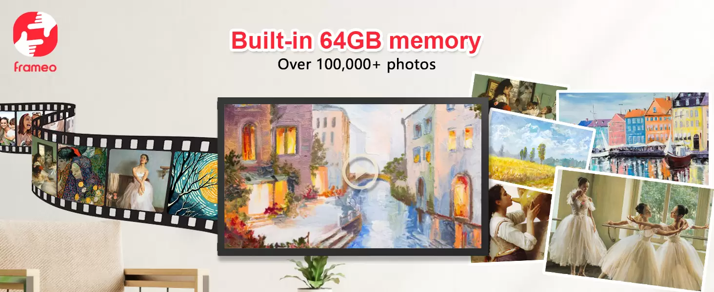 You can play photos and videos directly from an external storage (e.g. a micro SD card) without the need to take up space on the frame’s internal storage.