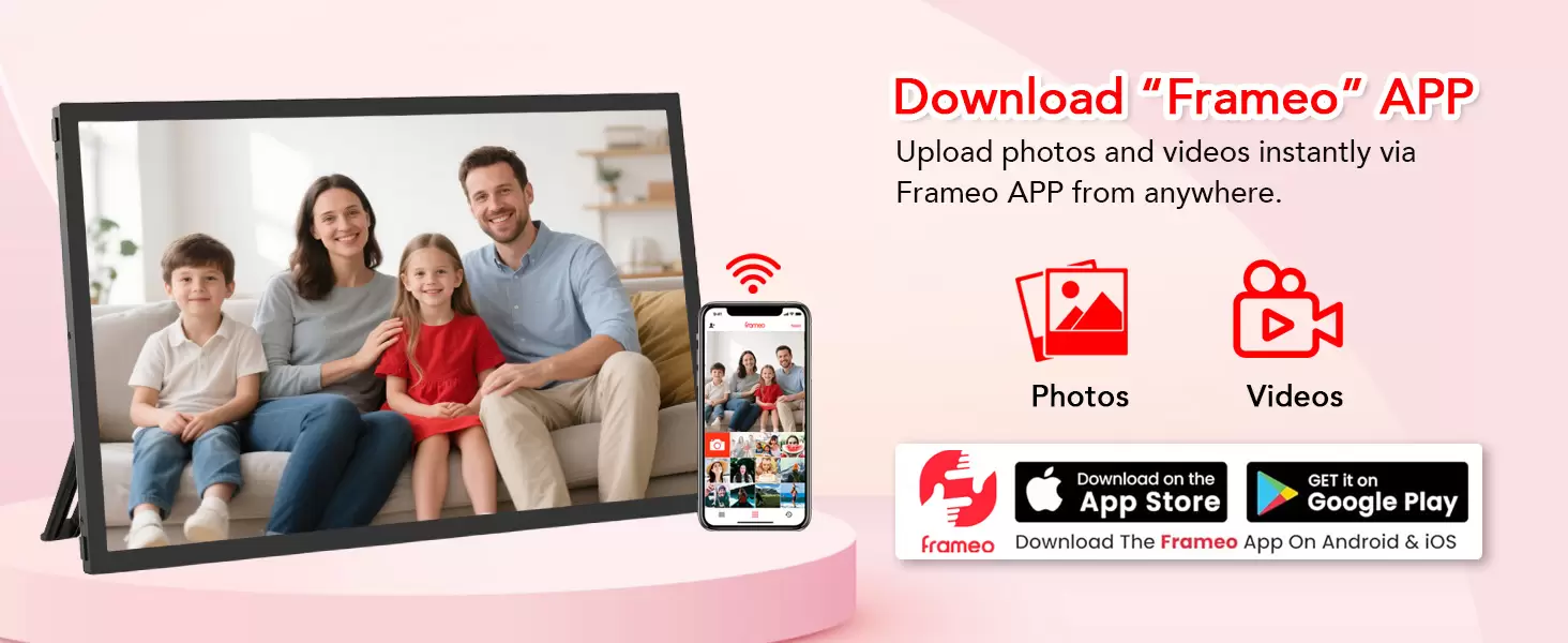 We get a lot of positive feedback from users who set up a frame at their home, load it with photos, and then gift it to someone without a Wi-Fi connection. Then, whenever they visit the household without Wi-Fi, they can connect the frame to a smartphone hotspot and simply transfer photos while the frame has an internet connection.